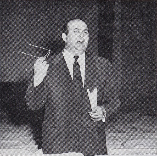 Boris Morros, Hollywood producer, FBI double agent and Moropticon inventor, at a news conference in 1957.