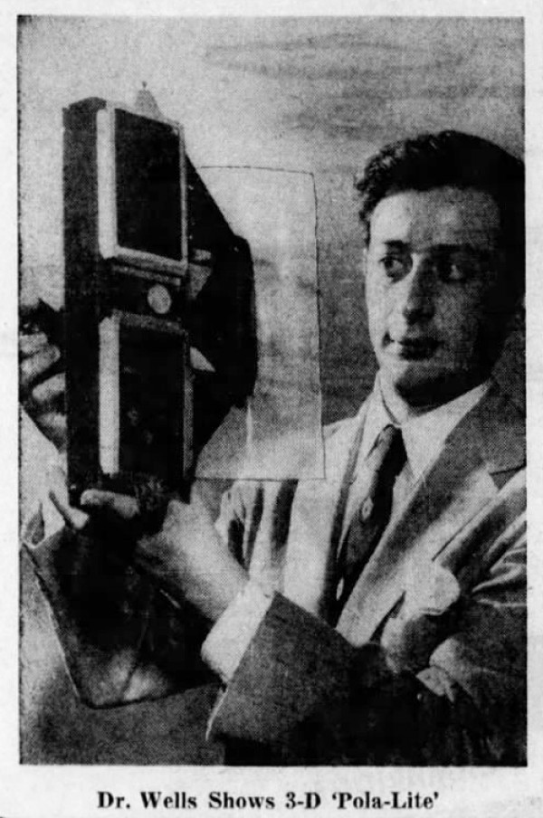 Dr. Leon Wells holding the Pola-Lite attachment in 1954.