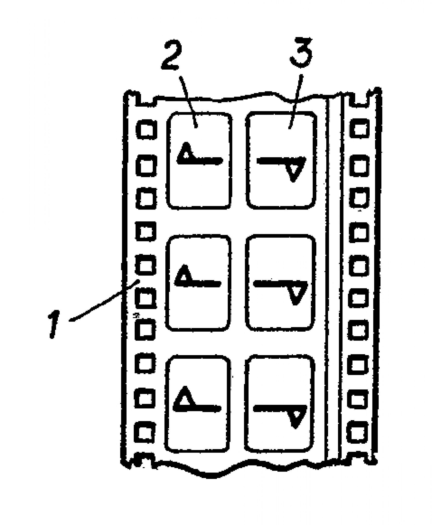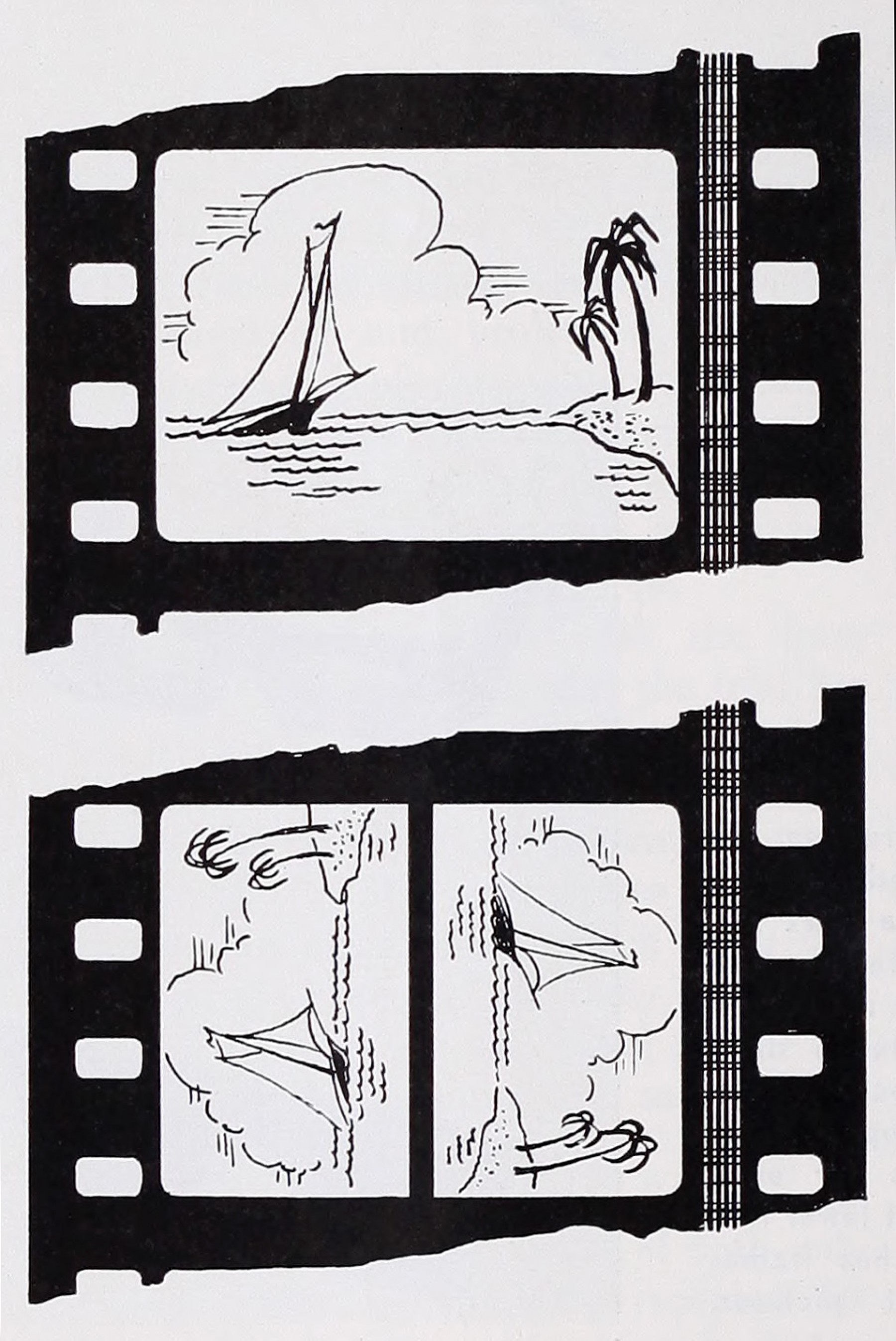 As an exhibition format, Pola-Lite printed both left and right images vertically (rotated 90 degrees) within the space usually used for a single frame. In effect, the format printed two subframes, one for the left eye and one for the right eye, alongside four perforations, with the top of each subframe facing the outside edge of the film (Heuel & Koshofer 1978, p. 964). A diagram drawn by Schutz called such arrangement “toe to toe.”
