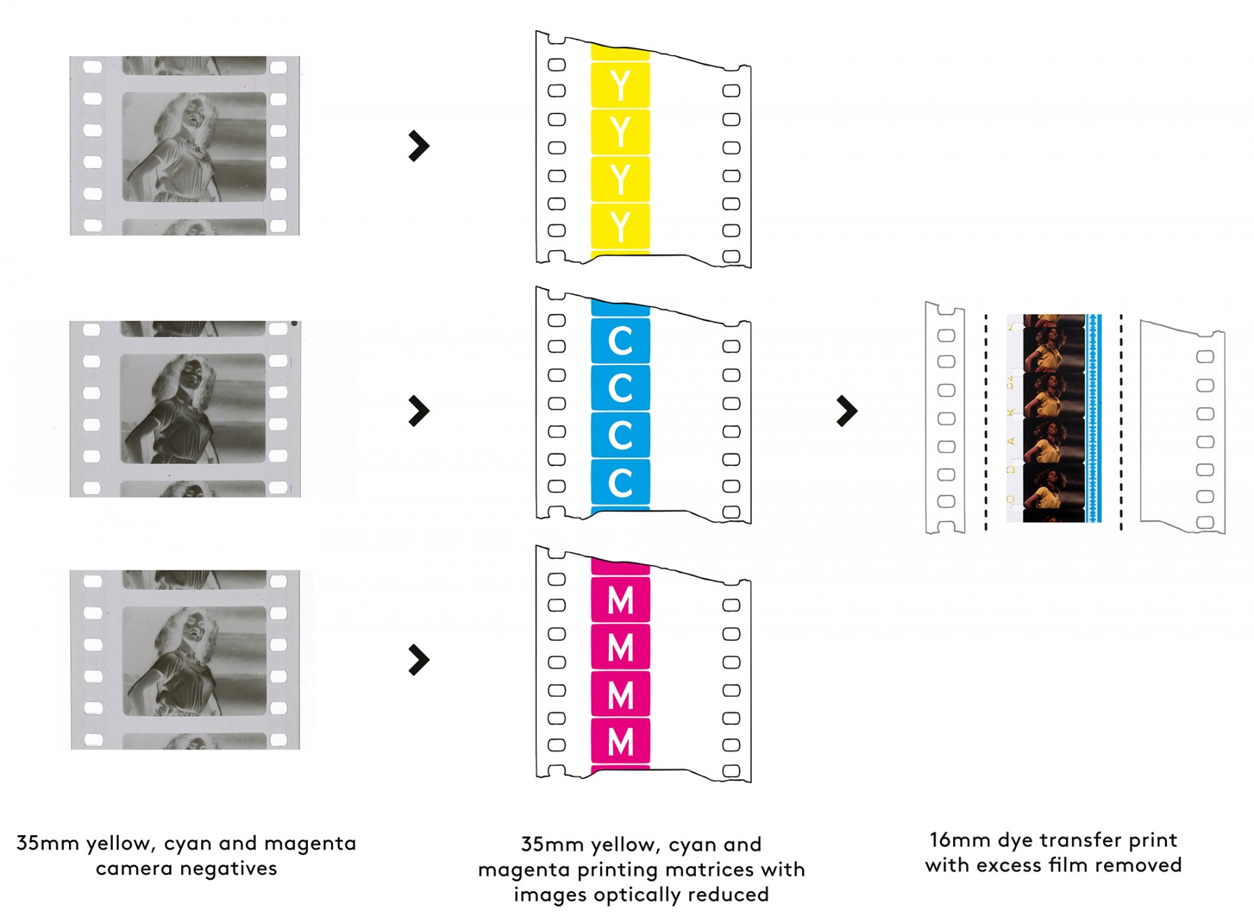 By the 1970s, however, the exponentially more streamlined chromogenic printing process, particularly Eastman Color, had become the industry standard. While 35mm imbibition prints continued to be made in limited quantities until 1978, Technicolor’s specialized double-rank equipment in their Hollywood plant was dismantled in 1971 and the company ended production of single-rank 16mm prints in 1974.